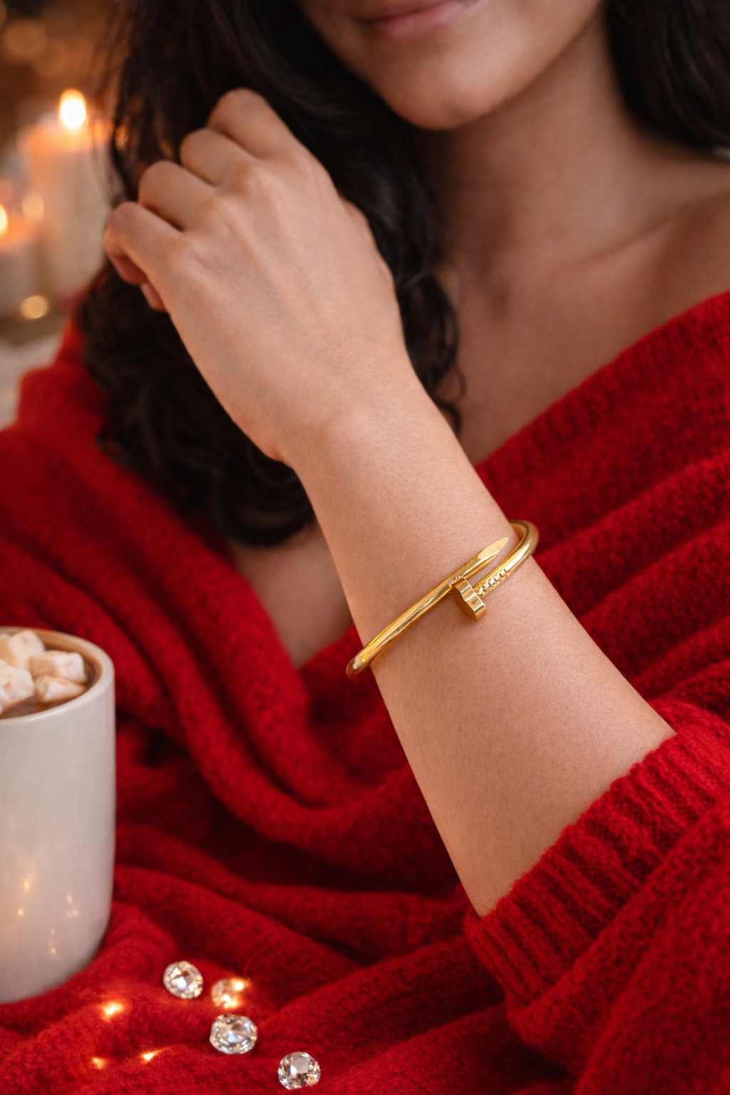 Whether styled alone or stacked, the Lucky Clover Nail Bracelet adds a bold yet elegant touch to any outfit — from cozy days to special occasions.